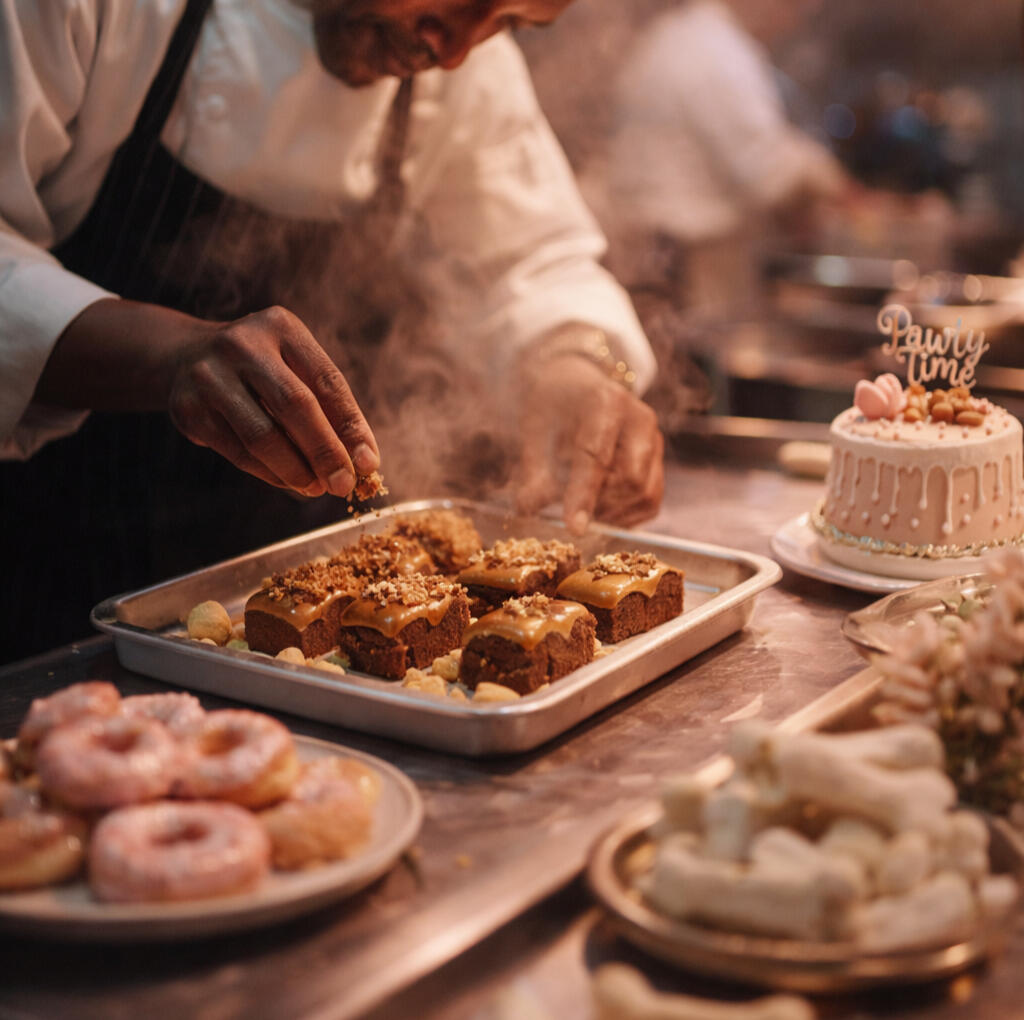 At Gourmini Doggi, we create unforgettable celebrations that turn your pup’s special day into a moment of true indulgence. From freshly baked cakes and specialty treats to our exquisite, chef-inspired cuisine, every detail is designed for picture-perfect memories — from pizza parties to elegant dinner soirées. Each experience delights both dogs and the humans who adore them.Our signature creations — from steak, sweet potato, and cheese pizza to the rib shank centerpiece and handcrafted cupcakes — are crafted with love, flair, and a touch of canine extravagance. Whether it’s a birthday, an adoption anniversary, or simply because your fur baby deserves the world…